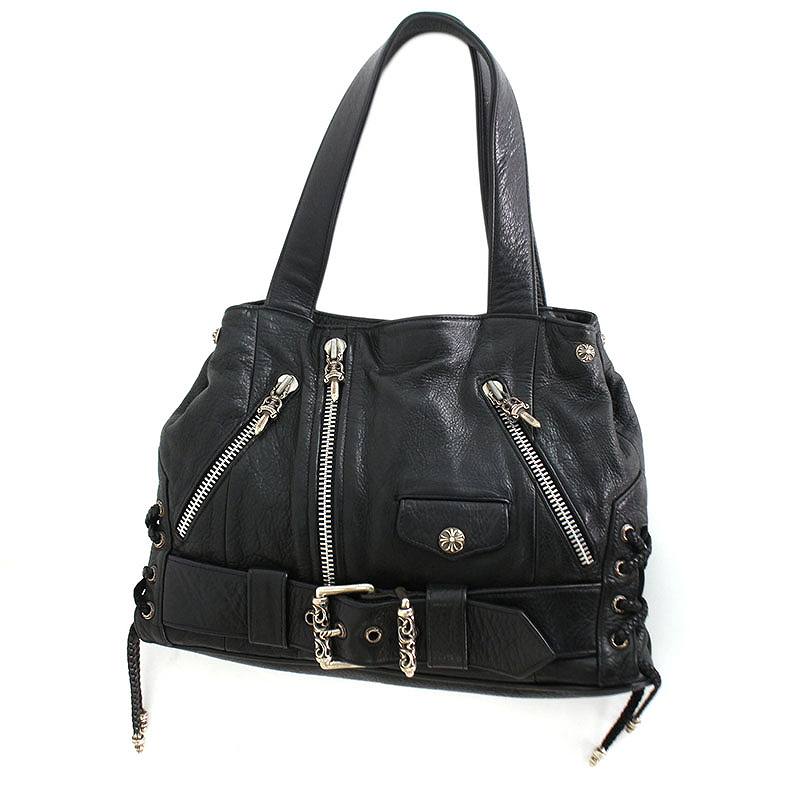 クロムハーツ/Chrome Hearts 【JJ DEAN LG/JJディーン ラージ】レザーライダースハンドバッグ(LARGE/ブラック)【NO05】【小物】【711081】【中古】【P】bb33#rinkan*B