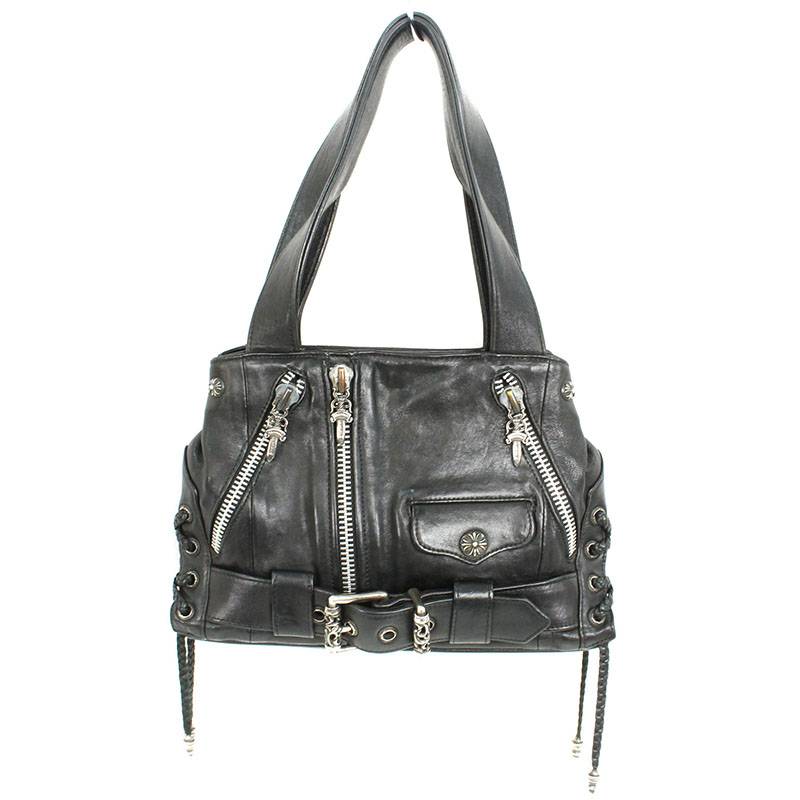 クロムハーツ/Chrome Hearts 【JJ DEAN LG/JJディーン ラージ】レザーライダースハンドバッグ(L/ブラック×シルバー)【BS55】【小物】【728081】【中古】bb27#rinkan*B