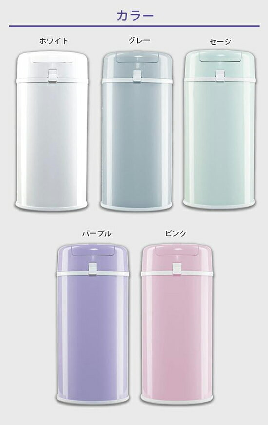 30リットルダストボックス詳細 【商品名】 スタイリッシュペール 紙おむつ処理容器 【サイズ(約)】 直径29.5×高さ53cm 【重量(約)】 3100g 【素材・材質】 スチール、アルミニウム、ABS樹脂、エチレンプロピレンゴム 【製造国】 トルコ 【区分】 インテリア雑貨、完成品 【カラー/JAN】 ホワイト/4562392592489 グレー/4562392592496 セージ/4562392592502 パープル/4562392592519 ピンク/4562392592526 広告文責 (有)アテーネシステム 076-254-0238
