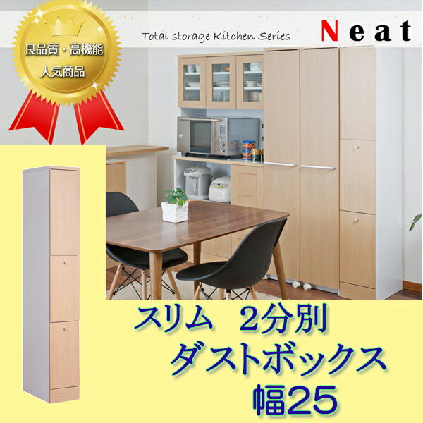 キッチンシリーズNeat ダストボックス スリム 2分別 幅25 ナチュラル
