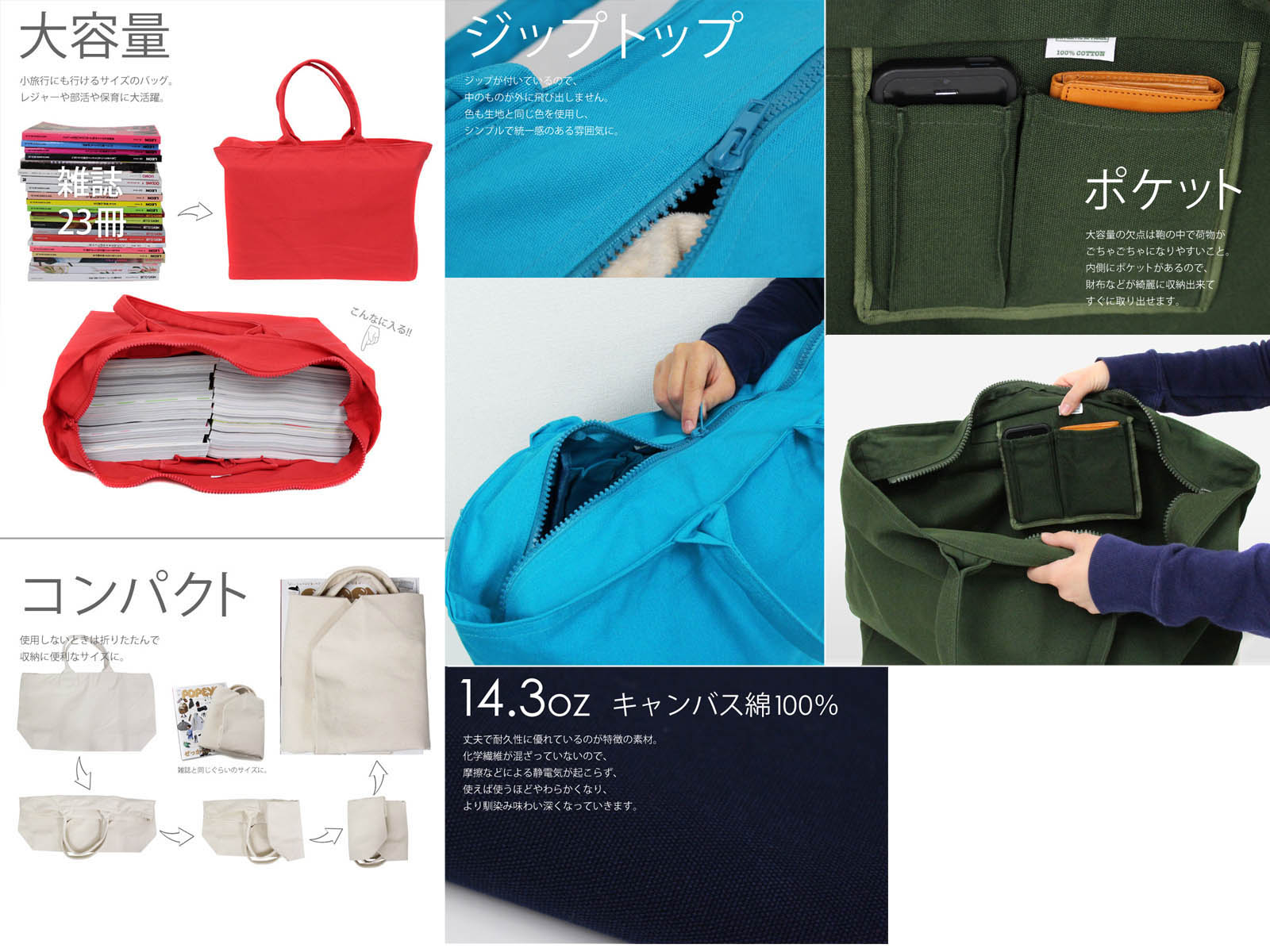 【あす楽】マザーズバッグ マザーバッグ 無地 大容量 マザー バッグ / ジップトップ / カジュアル / 赤 青 カーキ 黒 紺 / 保育 保育園 幼稚園 軽量 旅行 トート キャンバス ファスナー ポケット